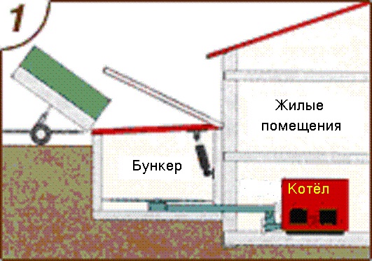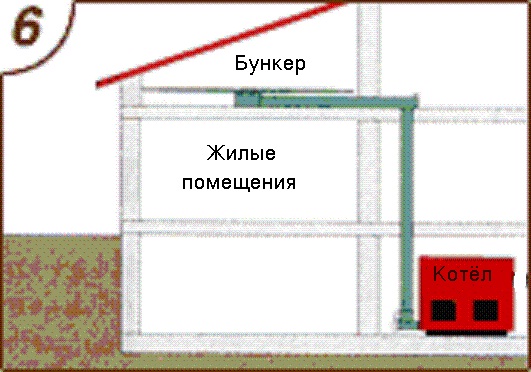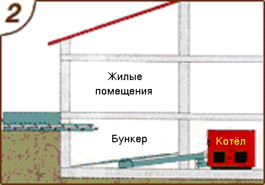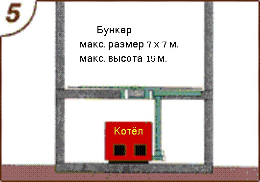 Уровень пола в бункере несколько приподнят, по сравнению с уровнем пола котла и доставка осуществляется горизонтально.